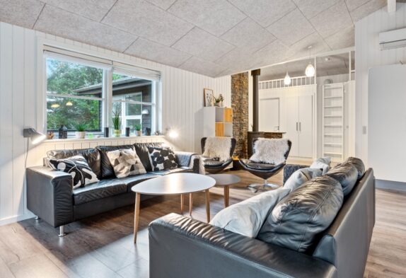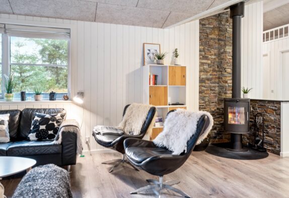 Den hyggelige stue bliver fuldendt af brændeovnen, som giver god varme og masser af hyggelig feriestemning, når I slapper af i sofaen med en god bog eller en film og et glas vin.