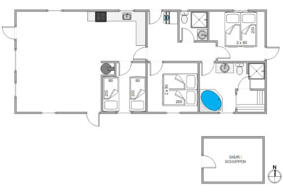 Indvendigt er det lyst og moderne med loft hele vejen til kip, hvilket giver en fantastisk rumfornemmelse. Sommerhuset indeholder også alle de faciliteter der efterspørges i dag, som kan danne rammen om en skøn ferie for hele familien i Søndervig. I finder blandt andet både vaskemaskine og tørretumbler, der giver jer mulighed for vaske under jeres ferie, hvilket også gør det nemmere for jer at pakke til ferien.