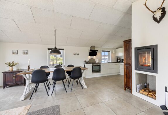 I det skønne køkken-alrum finder I et rummeligt og lyst rum, hvor der virkelig er lagt op til gode stunder. Det veludstyret køkken gør madlavningen nem og bekvem, og rumopdeling giver jer også mulighed for at tilbringe masser af kvalitetstid med hinanden. I kan også lade opvaskemaskinen klare opvasken efter madlavningen, således I kun behøver at bruge tid på nydelse og afslapning. Tænd op i brændeovnen, og nyd den hygge og varme som den spreder.