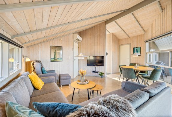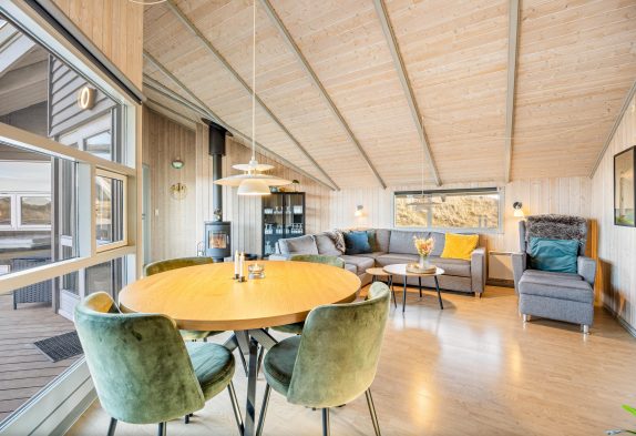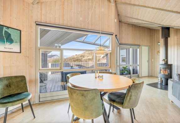 I dette lyse og indbydende sommerhus i Bjerregård finder I alt, hvad I behøver for en dejlig og afslappende ferie ved Vesterhavet. Her er plads til hele familien – uanset alder. Stranden ligger tæt på, og efter en frisk gåtur langs klitterne kan I nyde en stund i sommerhusets sauna eller tage et afslappende boblebad. De mindste kan more sig i sandkassen eller på gyngen, mens de voksne nyder roen på terrassen. Også familiens hund er velkommen og vil sætte pris på den store naturgrund og de mange muligheder for leg og friluftsliv.