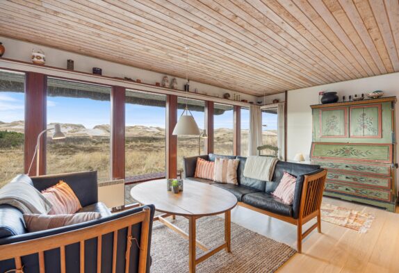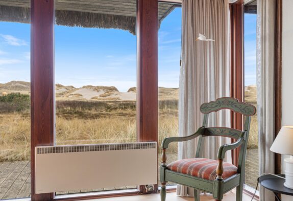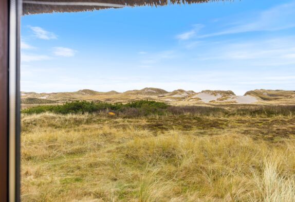 Fra det store vinduespartie i stuen, men specielt også fra første salen, kan I nyde panoramaudsigten over hede- og klitlandskabet mod vest. Sommer som vinter byder det en fantastisk udsigt over den vestjyske natur.