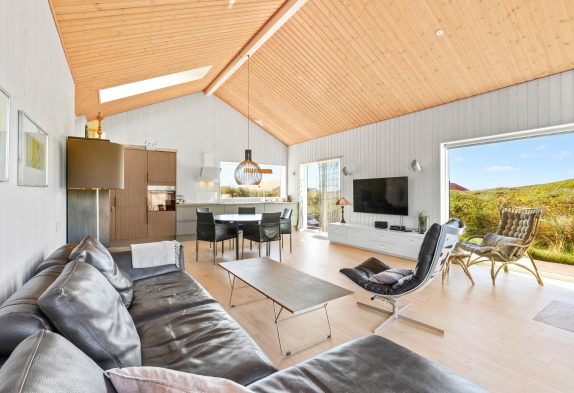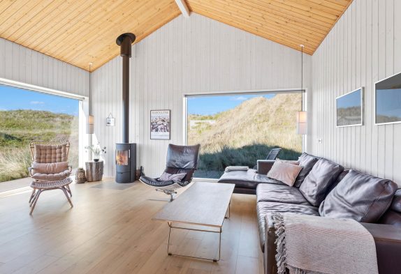 Den spændende arkitektur og opbygning er lavet med omtanke for beliggenheden – nemlig så feriehuset passer flot ind i landskabet og så I får mest mulig ud af den smukke natur. Derudover er det flot, lyst og rummeligt indrettet, så der er god plads til en hyggelig og afslappende familieferie for tre. Med sin skønne beliggenhed i først klitrække, kan I for alvor nyde en minderig og god ferie her på Holdvej 24.