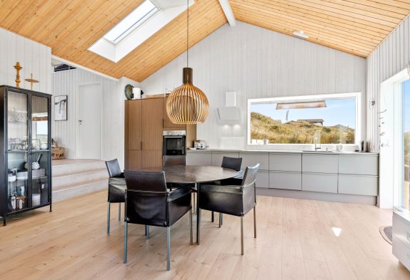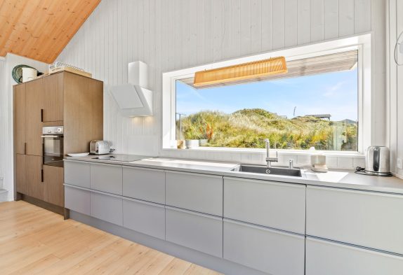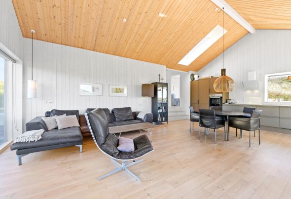 Så snart i træder ind i feriehuset, vil I med sikkerhed føle jer godt til rette. Den rummelige entre er bare starten på et yderst velfungerende og charmerende feriehus. Feriehuset er mere rummeligt end mange andre feriehuse, så her har I god plads. Især det flotte, nedsænkede opholdsrum med det åbne køkken og den hyggelige stue giver plads til samvær og hygge under ferien. Alle de store vinduespartier er med til lukke masser af lys ind, men de inviterer samtidig også den skønne natur helt indenfor.