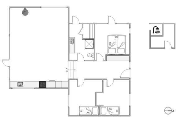 Ved feriehuset har du også et anneks med ekstra toilet og udendørsbruser. Den udendørs bruser er især ideel efter en tur i saunaen – eller efter en strandtur, hvor du har nydt at gå med bare tæer i sandet. Bruseren vil være tilgængelig for brug i perioden april til november.