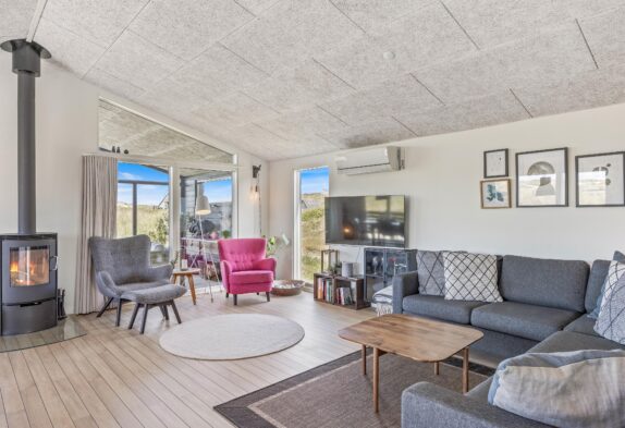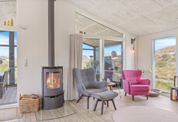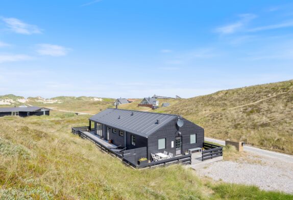 Feriehuset er som et ‘ægte’ feriehus opført i træ, hvilket udstråler feriehygge på terrassen eller foran den tændte brændeovn. Og feriehuset passer flot ind i klitlandskabet ved Vesterhavet, hvor du sikkert vil nyde mange gåture langs vandet. Det er et veludstyret feriehus, der egner sig perfekt til familien eller vennerne, der er på udkig efter et moderne og lækkert feriehus
