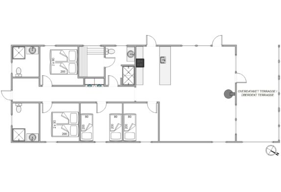 Ved feriehuset finder I flere gode terrasser, så altid kan finde en plads med læ og sidde ude og nyde den friske vestenvind. Den ene terrasse er helt lukket, og længst mod vest finder I en helt fantastisk overdækket terrasse. Her er både overdækket og store glaspartier der afskærmer for alt vind og mulig regnvejr. Denne fantastiske terrasse tillader jer at sidde ude uanset vind og vejr og her er naturligvis behagelige loungemøbler og terassemøbler.