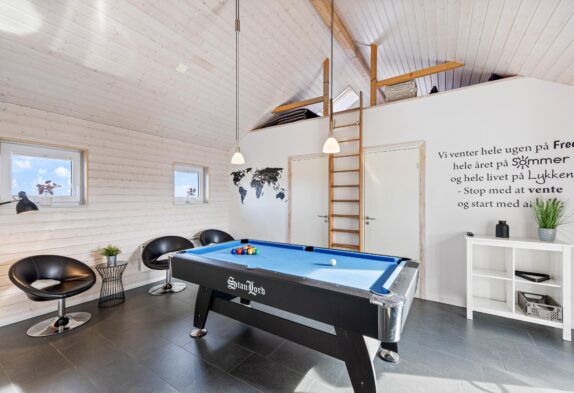 Ved siden af stuen har du et aktivitetsrum med både poolbord og fladskærm. Her kan hele familien hygge sig og dyste mod hinanden. Men især familiens børn og unge vil sikkert nyde at have et sted, hvor de kan trække sig lidt tilbage.