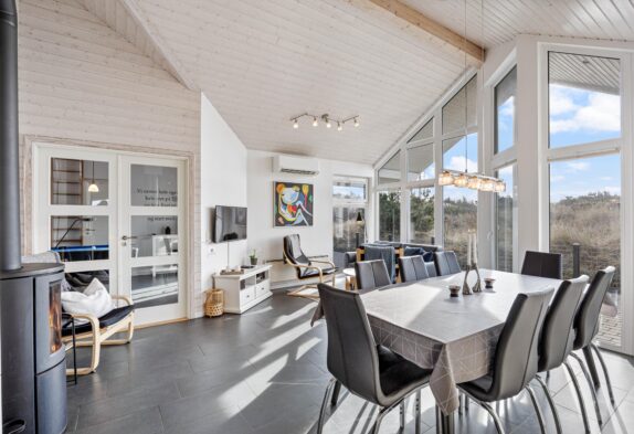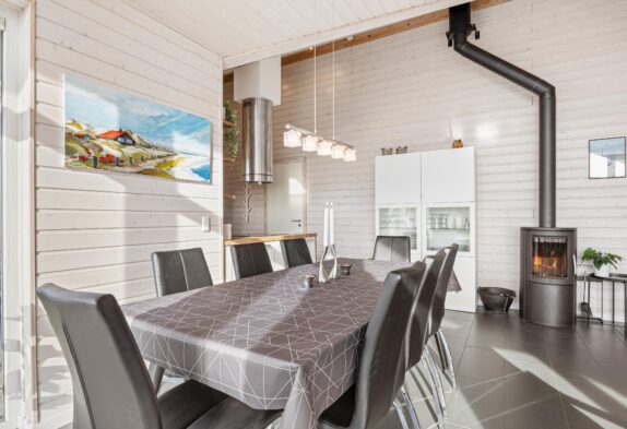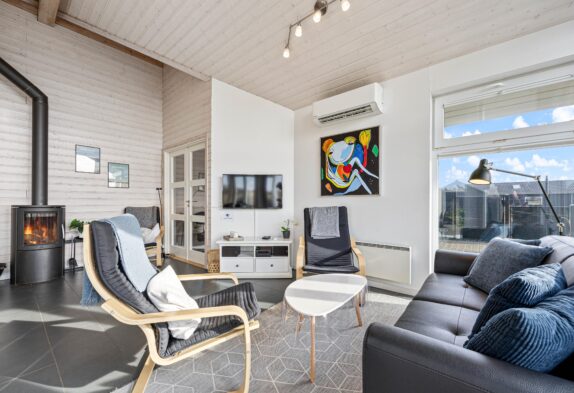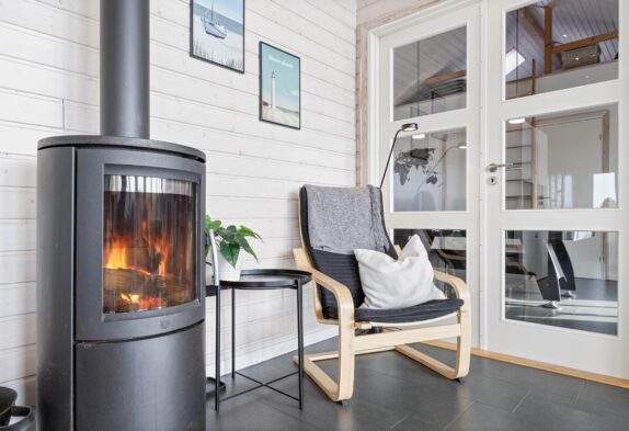 Efterfølgende kan du tænde op i brændeovnen og sætte dig godt til rette i stuen – måske med en god bog eller film.