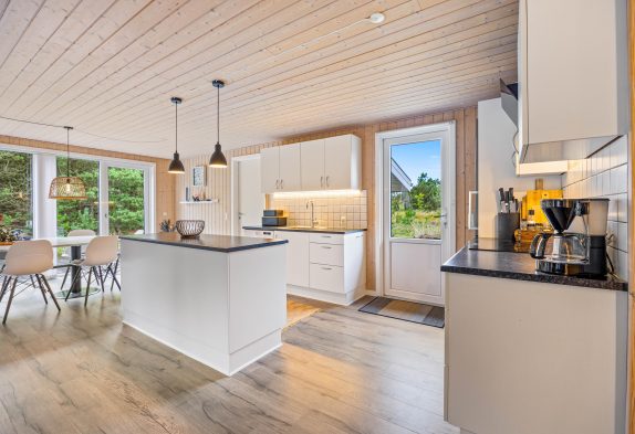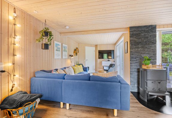 Sommerhuset er løbende blevet renoveret og sidst i 2018, hvilket sikrer moderne faciliteter i stemningsfulde rammer. Her findes der et veludstyret køkken med en opvaskemaskine og en separat fryser på 71 liter, der gør det nemt at tilberede alle jeres feriemåltider. Den rummelige stue er udstyret med en brændeovn, som skaber en hyggelig atmosfære på kølige aftener, og for varme sommerdage sikrer en luft til luft varmepumpe, at indeklimaet altid er behageligt.