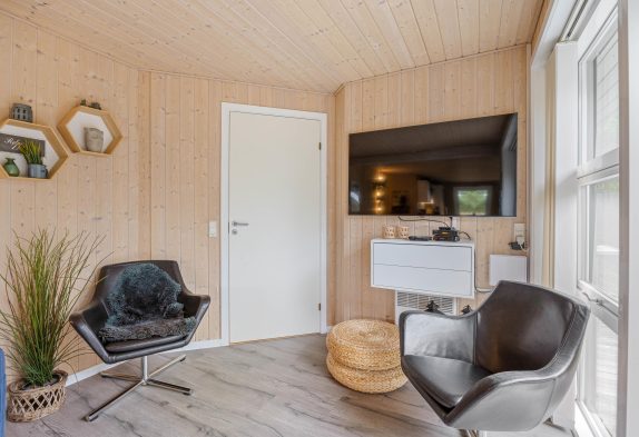 Med en imponerende grund på 1333 m2, er der masser af plads til udendørs aktiviteter. Sommerhuset har flere forskellige terrasse med grill og havemøbler, perfekt til de lange sommeraftener. Her er også plads til, at I kan tage jeres hund med – én hund er tilladt i sommerhuset. Grunden er en naturgrund, hvilket betyder, at I kan opleve den smukke, naturlige flora og fauna direkte fra jeres feriehus. Den egenerede terrasse vender mod nordvest, og her kan i uforstyrret nyde den friske vestenvind men også timevis af dasning på solsengen helt uforstyrret for naboerne. Selv hvis det regner, kan I sidde i ly og læ på husets lukkede terrasse.