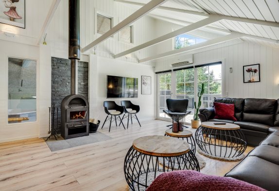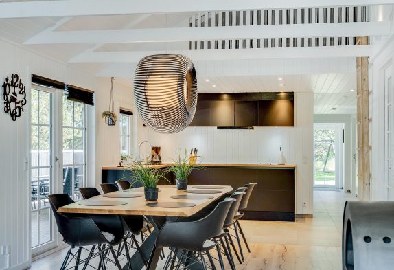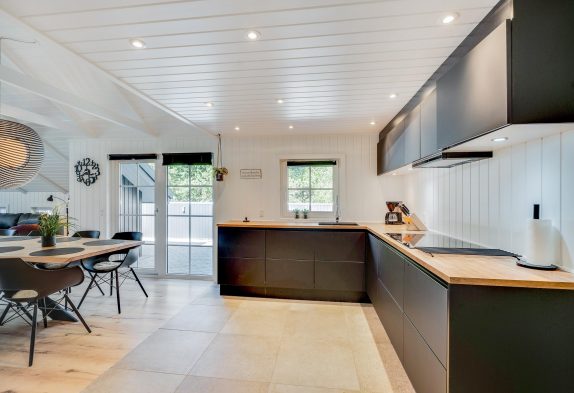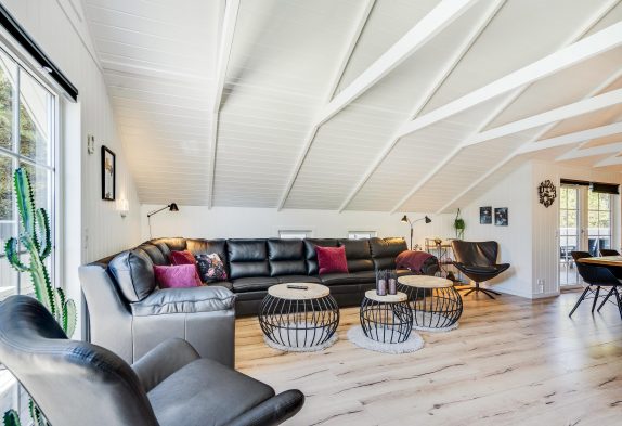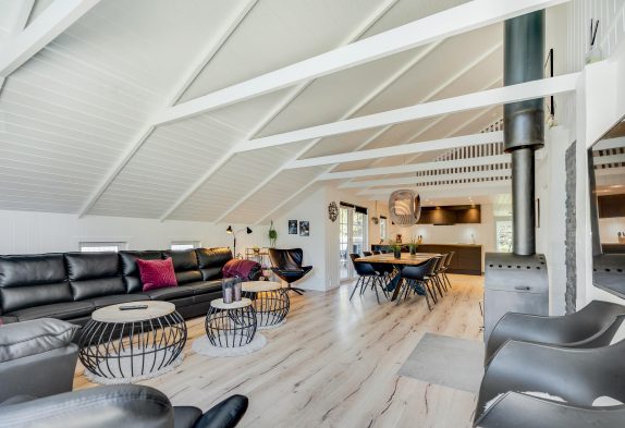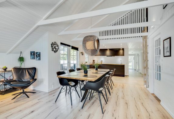 Et skønt og lækkert indrettet feriehus i flot skandinavisk stil. Overalt er der enten flotte trægulve eller praktiske fliser, og i badeværelserne er der naturligvis gulvvarme.