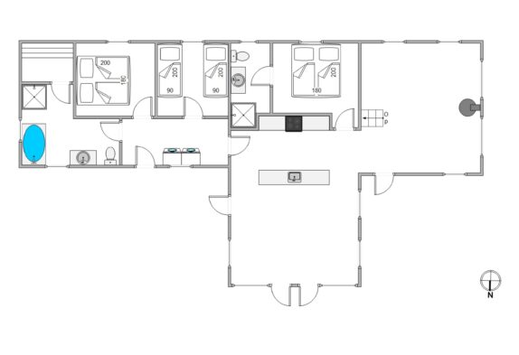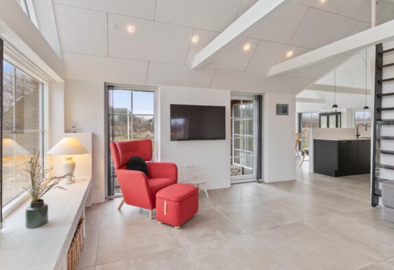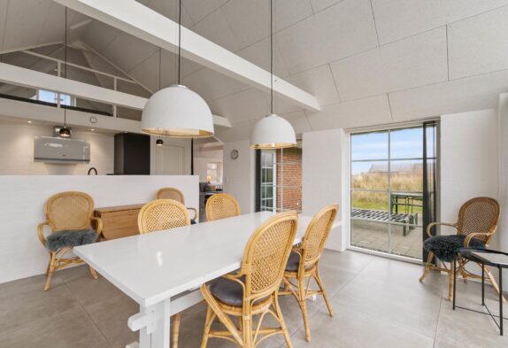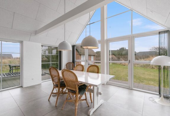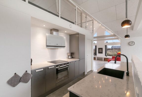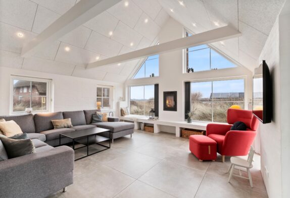 Husets hjerte bliver dannet af det åbne køkken- og stuerum, som har flere hyggelige kroge og bliver centrum for samvær i løbet af ferien. Der er chromecast på alle tv – på den måde har I mulighed for at alle kan se deres yndlingsfilm. Store vinduespartier inviterer solens stråler og det smukke klitlandskab indenfor, og loftet ført til kip skaber endnu mere rummelighed og en behagelig ferieatmosfære. For et ekstra godt indeklima sørger husets ventilationsanlæg, der giver samme fugtighed i hele huset, hvilket især asmatikere vil nyde godt af.