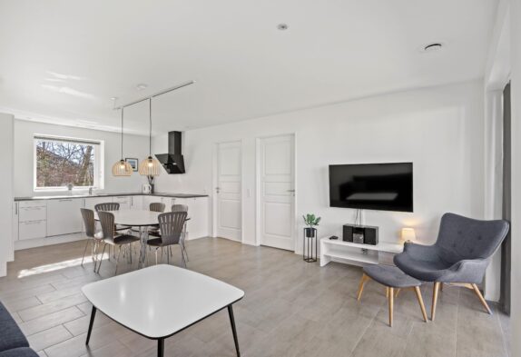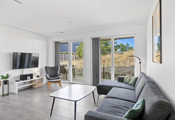 På Tane Hedevej 26 med kun 800 meter til stranden og 500 meter til Blåvands centrum ligger dette i 2018 nybyggede rækkehus. Småt men godt – perfekt til familien på op til 6 personer, og hunden er også velkommen.
