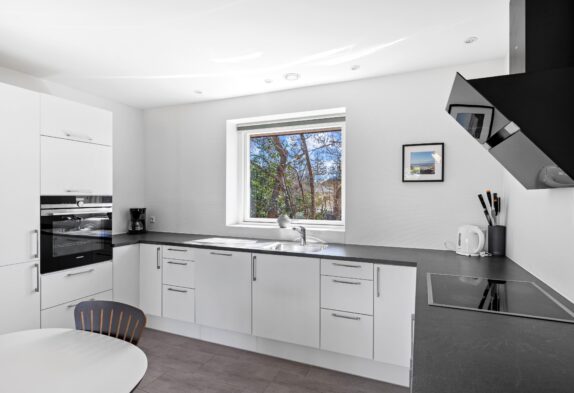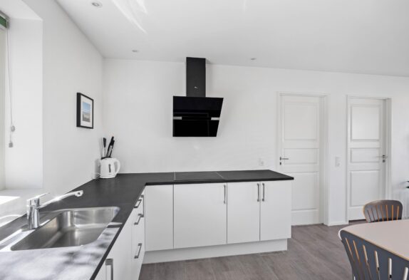 Her kan 6 personer bo dejligt på 90 m2, fordelt på soveværelset med dobbeltseng og 2 værelser med to enkeltsenge, en åbenplansløsning med stue og køkken i ét samt et badeværelse med gulvvarme. Feriehuset har en opvaskemaskine, vaskemaskine og tørretumbler, så er det nemt at holde ferie – især for småbørnsfamilien.