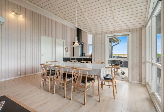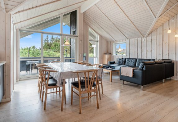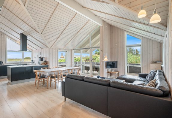 | På Laust Diges Vej 47 i Haurvig ligger dette lækre feriehus til 8 personer (og 2 hunde). Her får I ikke kun et topudstyret og velindrettet hus med både udendørs spa og sauna, men også en helt fantastisk beliggenhed med panoramaudsigt til fjorden! Så bliver det ikke meget bedre. Femstjernet feriehus med veludstyret og imødekommende indretningDet flotte feriehus i Haurvig er først opført i 2019, og med plads til 8 personer og 2 hunde behøver I ikke efterlade nogen familiemedlemmer derhjemme. Så snart I træder indenfor, vil I blive mødt af de lyse og moderne omgivelser, der åbner hele huset op og skaber en imødekommende atmosfære fra første ferieøjeblik. Det velindrettede indre byder på alt, hvad I har brug for, for at holde en afslappende ferie i det grønne. Der er både opvaskemaskine, vaskemaskine og tørretumbler, så der hurtigt kan komme styr på de praktiske opgaver, og en hurtig og stabil internetforbindelse sørger for, at I kan streame serier og surfe Facebook hele ferien. Gennem de store vinduespartier kan I nyde panoramaudsigten til fjorden selv på de regnfulde og blæsende efterårsdage. Udendørs spa, sauna og panoramaudsigt fra terrassenUdenfor gemmer sig endnu flere lækre overraskelser, som helt sikkert er med til at hive de fem stjerner hjem. Ud over en skøn, lukket og delvist overdækket terrasse, står her nemlig også et udendørs spabad og en udendørs sauna. Nyd den smukke panoramaudsigt til fjorden, mens I slapper af i det varme boblebad, eller tag et velfortjent afbræk i den luksuriøse sauna. Beliggenheden på Laust Diges Vej er helt fantastisk – lige ud til den idylliske fjord og ganske uforstyrret. Selv om I bor på fjordsiden, er der heller ikke langt til Vesterhavet, og kun 700 meter skiller jer fra den imponerende sandstrand og de brusende bølger. Indkøbsmuligheder finder I masser af i den nærliggende havneby Hvide Sande, som har en helt speciel og rigtig charmerende atmosfære. Her kan I både ose i de mange butikker, spise god mad på en af de små caféer, mens kutterne sejler fra havnen eller købe frisk fisk til grillen. |