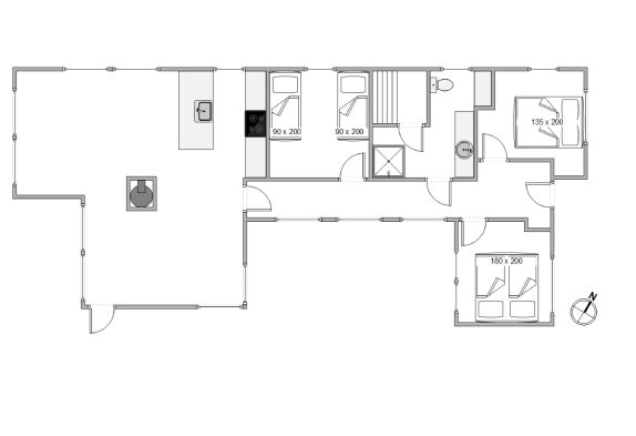 Der er 3 soverum, hvoraf 2 rum med dobbeltsenge og et med to enkeltsenge. I forbindelse med badeværelset er der også en sauna. Der er også vaskemaskine i feriehuset, som gør det nemt og afslappende for småbørnsforældre – de kan roligt lade børnene lege og blive beskidte i naturen.