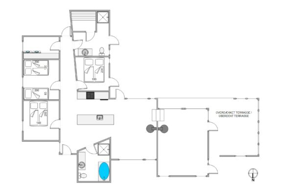 Terrasseforholdene er helt i top, og rundt om huset finder I et hav af forskellige siddekroge, hvor I helt uforstyrret kan nyde feriedagene og den smukke natur. Der er sørget for gode havemøbler, loungesæt, overdækning og afskærmning, og der er stort set altid ly og læ at finde. Til børnene er der sørget for gyngestativ og sandkasse.