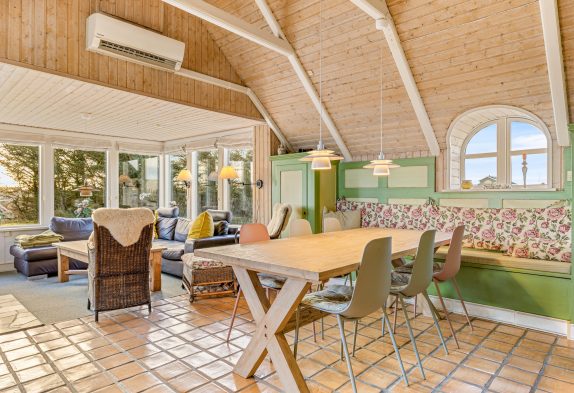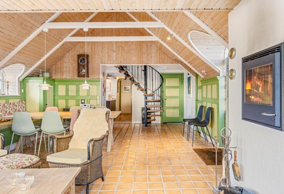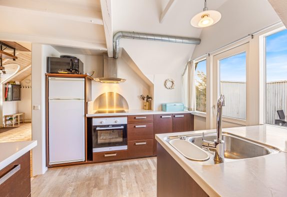 I det hyggelige stueområde kan I slappe af foran den knitrende brændeovn. Sofaen er en rigtig flyder, så her kan I sagtens – måske med en god bog i hånden og en friskbrygget kop kaffe ved siden af? Hvis I dog ønsker en mere økonomisk opvarmning af huset, er dette også muligt, eftersom huset også har en luft-til-luft varmepumpe