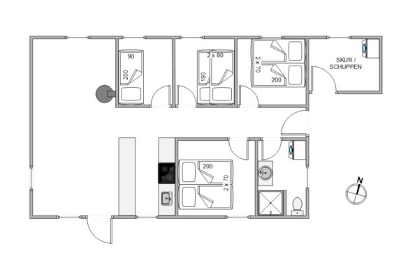 For de helt små er der både højstol og barneseng, de mellemste vil elske køjesengene og til de store er der gode 140ér dobbeltsenge. Her er simpelthen plads til hele familien og familiens hund er også velset.