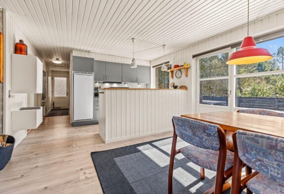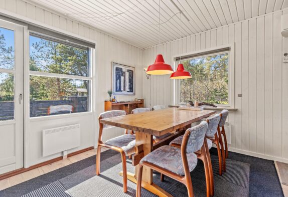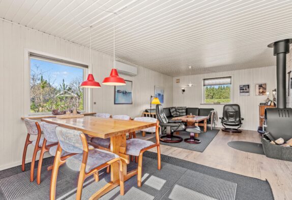 På Hans Hansensvej 108 bor I rigtigt dejligt. Huset er i 2018 blevet renoveret og er lækkert, lyst og moderne indrettet. Her er brændeovn til hyggeaftener, stor fryser i skuret til is og madvarer – eller måske til de friskfangede fisk fra Ringkøbing Fjord? Selvfølgeligt rummer køkkenet en opvaskemaskine i køkkenet og vaskemaskinen og tørretumbleren afrunder billedet af en ferie, hvor det er gjort nemt, rigtigt at kunne slappe af.