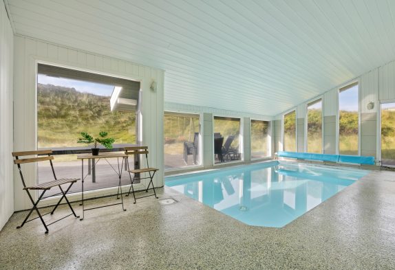 På Sortebærdalen 35 i Houvig ligger dette hyggelige træferiehus, som er med pool og til 10 personer, ideelt for storfamilien – eller 2 familier, der gerne vil holde ferie sammen. Børnene vil elske pool afdelingen, hvor der også er spa og sauna. Det indbyder rigtig til leg og afslapning morgen, middag og aften.
