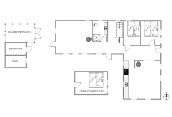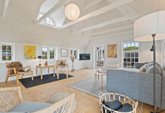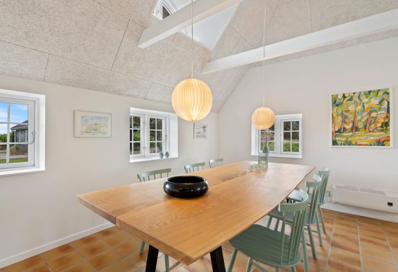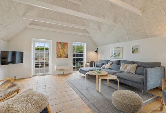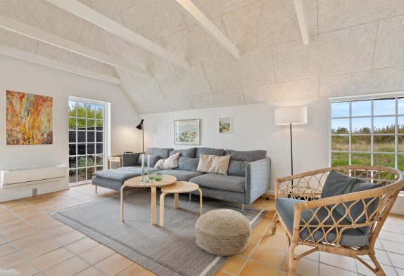 Hyggelige – og næsten lukkede terrasser – mod øst, syd og vest, gør, at I til enhver tid kan finde en solplet, hvor I kan nyde det danske vejr og områdets storslåede natur. Terrasserne indbyder virkelig til skønne aftener, hvor man kan høre havets brusen i baggrunden, mens man f.eks. nyder en grillmiddag og et glas vin. Derudover er der en moderniseret udestue, hvor I kan nyde naturen i alt slags vejr. Udenfor finder I også et ladestik til el-bil, så hvis I kører i en el-bil, har I mulighed for at lade jeres bil under ferien.