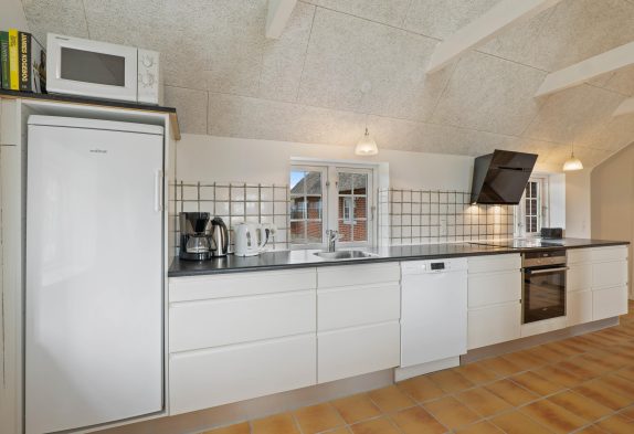 Sommerhuset er renoveret i 2022 og traditionelt opdelt med et flot køkken-alrum med brændeovn. Hvorfra der er udsigt til Ringkøbing Fjord. Køkkenafdelingen er bl.a. udstyret med induktions-komfur, mikroovn, opvaskemaskine og en stor fryser.