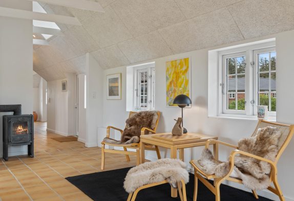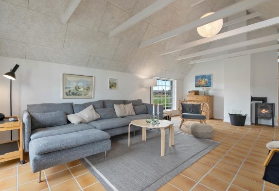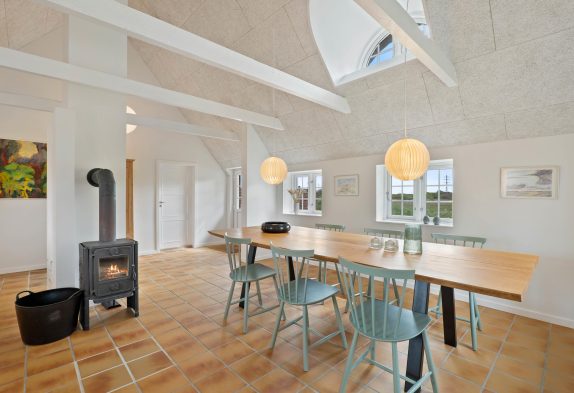 Den store, lyse og hjemlige stue indeholder endnu en brændeovn, hvor man også på koldere dage kan nyde en god bog og en kop kaffe foran den varme og knitrende ild i brændeovnen.