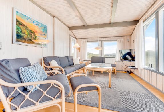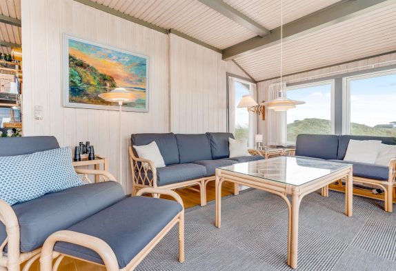 De særligt morgenfriske kan begynde dagen med et smut ned over klitterne til den brede sandstrand og tage en morgendukkert. Så er det tid til rundstykker og kaffe, som ved godt vejr kan nydes på terrassen, hvor der er læ og en fantastisk udsigt over hele området. I den kolde årstid, hvis regn og blæst holder jer inden døre, kan I stadig nyde udsigten gennem de store panoramavinduer. Imens I nyder varmen fra brændeovnen, kan I lade jer fascinere af det skiftende lys over hav og klitter – det er en oplevelse hver dag hele året og absolut balsam for sjælen.