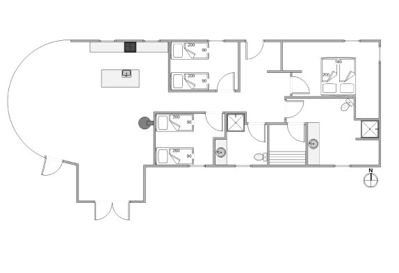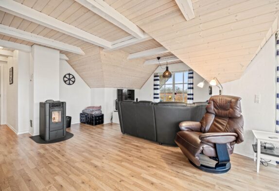 Dette gennemførte og flotte feriehus på Molsvej 7 er til seks personer, fordelt på tre soverum, heraf 1 med dobbeltseng og to med hver to enkeltsenge. De to badeværelser gør det ideelt for to familier at holde ferie sammen – eller meget praktisk, hvis der er teenagere med. Fra det ene badeværelse er der adgang til husets sauna, som er perfekt afslapning efter en rask spadseretur til vandet og i klitterne.