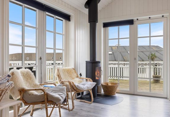 Til aften kan I få tændt op i grillen og skænket et glas rødvin og smide jer i den store sofa. Brændeovnen er med til at sætte den helt rigtige stemning med de varme gløder og den unikke udsigt, udover den flotte naturgrund.