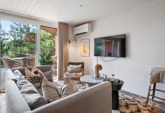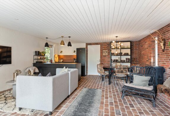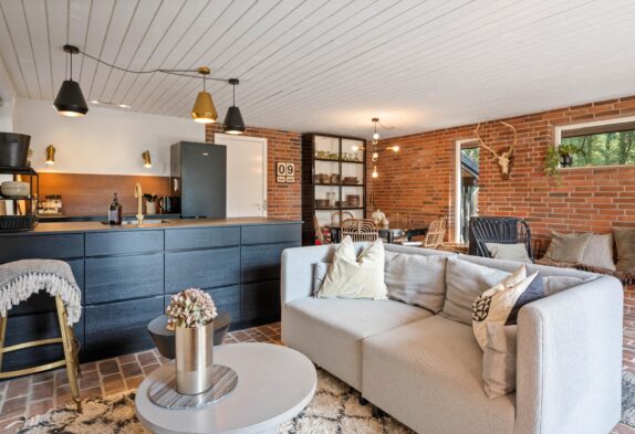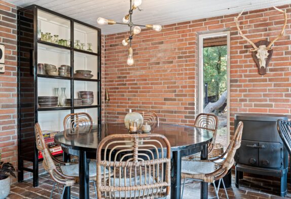 Det charmerende murstenshus på Lyngdraget 8 er en sand perle gemt blandt skovens træer. De nyrenoverede (2019) omgivelser kombinerer det stilfulde og moderne med den hyggelige og varme sommerhusstil og skaber en indbydende og afslappende atmosfære.