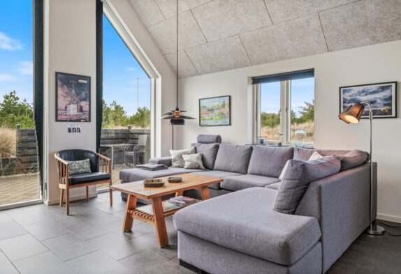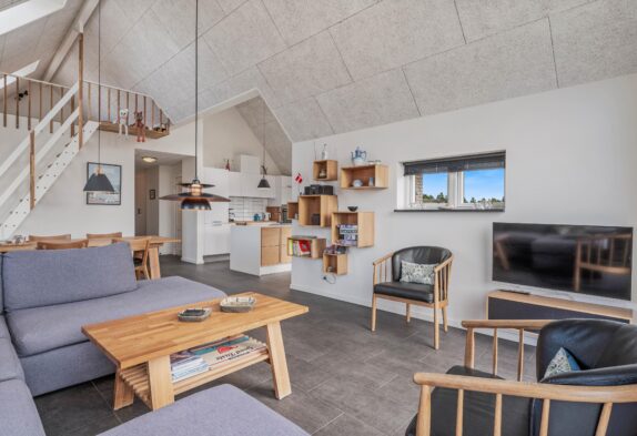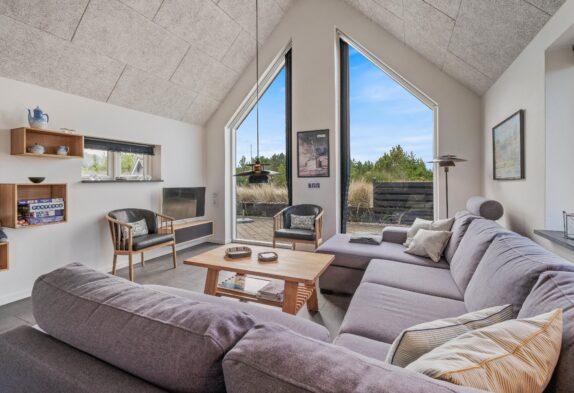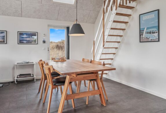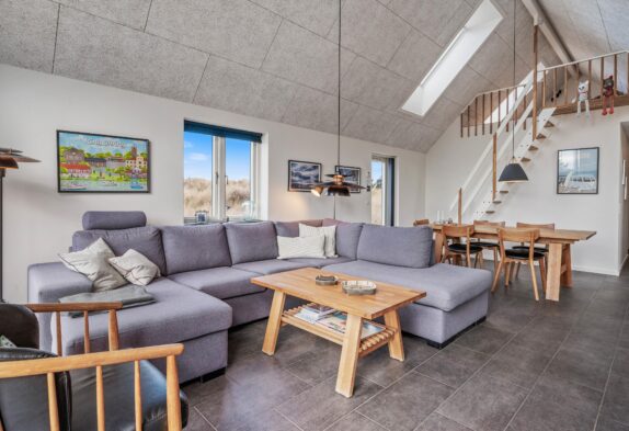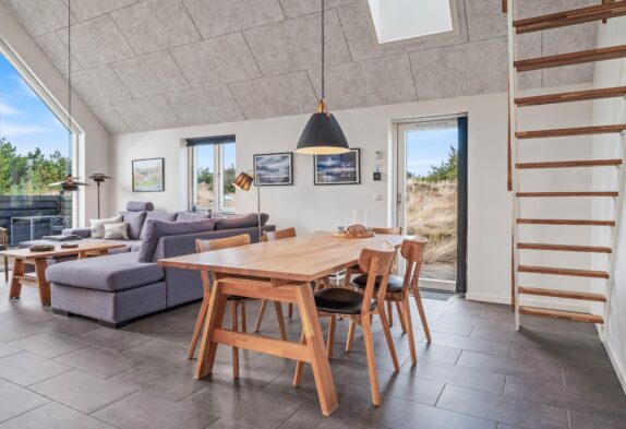 På den smukke og særegne klittange, Holmsland Klit, står dette dejlige hus klar til din ferie med familien eller venneparret. Det stilfuldt indrettede hus kan med sine 3 soverum, en dejlig hems og 2 badeværelser være familiens skønne ferieoase, men det egner sig også fortrinligt til 2-3 par venner, som gerne vil nyde lidt sommerhusflair sammen – hunden er også velkommen.