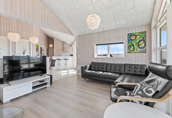 Midt i Bjerregårds populære ferieområde ligger dette skønne feriehus fra 2015. Med plads til 8 personer er feriehuset helt ideelt til en storslået familieferie, og med både sauna, spabad og aktivitetsrum er både store og små garanteret underholdning. Stranden ligger kun 200 meter væk, og den lokale købmand kan nås på gåben.
