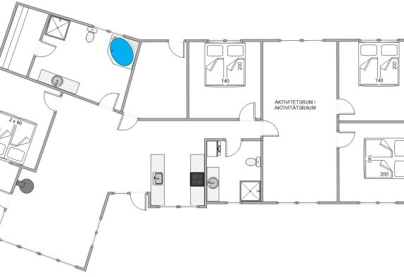 Skøn indretning med spabad, sauna og aktivitetsrum