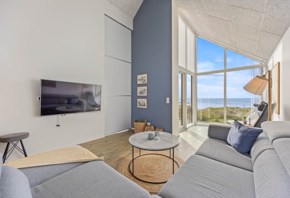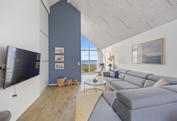 Kom med indenfor – vi byder velkommen på Langsand 100, som har 96 m² (fordelt på to etager) og plads til 6 personer. Indretningen er moderne med lyse farver bl.a. i soverummene og store vinduespartier, der inviterer de naturskønne omgivelser indenfor og giver et fantastisk lysindfald – og så kan I stå op til de smukkeste solopgange.