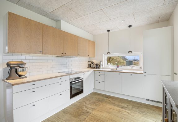 Sovepladserne er fordelt på tre gode dobbeltsenge. Her er desuden lavet en hyggelig hems over det ene værelse, hvor der er plads til børnenes leg. Det veludstyrede køkken har alt, hvad et feriekokken har brug for, samt en opvaskemaskine, der hjælper til med oprydningen efter aftensmaden.