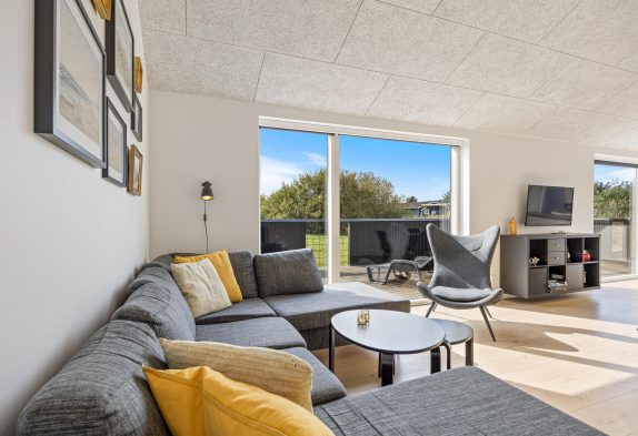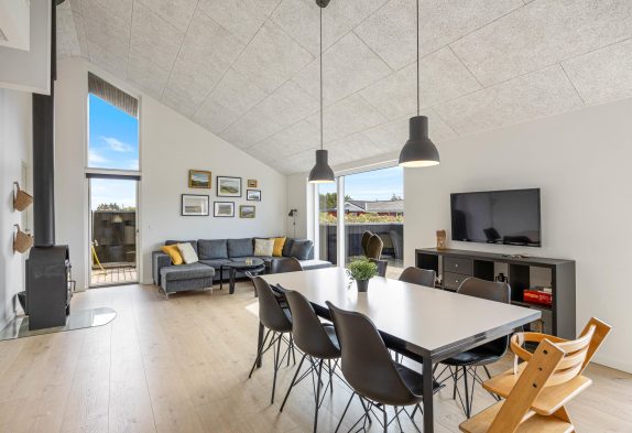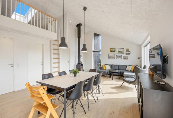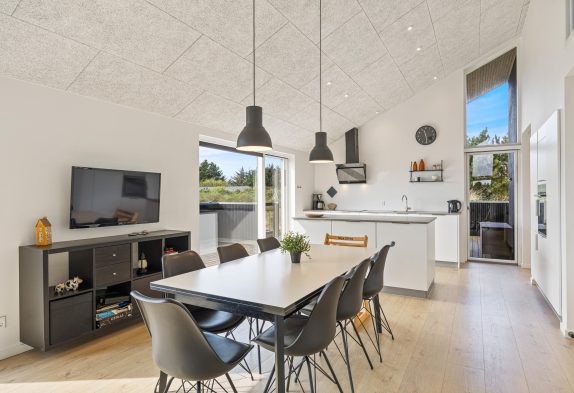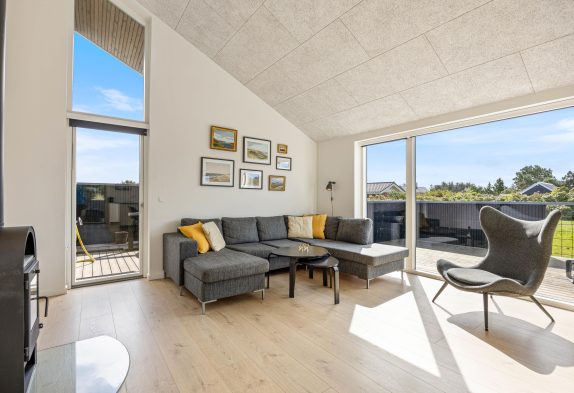 Dette moderne feriehus på Kirksvej 39 er en drøm for selv den mest kræsne feriegæst. Indretningen er moderne og super stilren med masser af herlige lyse farver, og store vinduespartier inviterer den smukke natur og solens stråler indenfor.