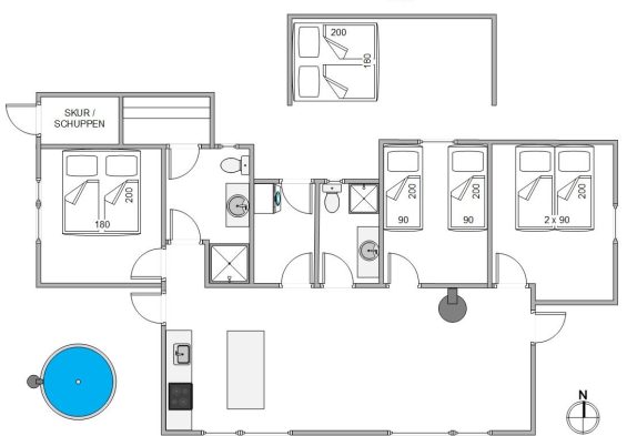 I det veludstyrede køkken er der alt, hvad feriekokken har brug for, inklusiv en opvaskemaskine til at klare den værste oprydning, og i det hyggelige stuehjørne står brændeovnen, som sikrer jer en dejlig temperatur og ikke mindst god feriestemning hele året rundt. Her er desuden gulvvarme i hele huset.