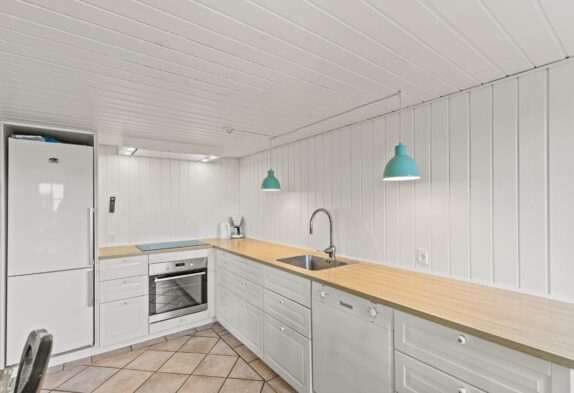Havvej 3 er moderne indrettet med et velindrettet køkken, vaskemaskine og tørretumbler. Således er der masser at tid og overskud til fælles hygge med madlavning, spil eller til at dase på sofaen foran brændeovnen. I 2020 er badeværelset på 1. sal moderniseret