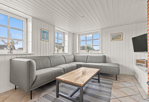 Med 125 m2 fordelt på 2 etager er her masser af plads til feriehygge med familien eller vennerne. De 3 soverum er dejligt store, 2 har dobbeltsenge og i det sidste er der 2 enkeltsenge. En dejlig luksus udgør de 2 badeværelser, som begge har gulvvarme – i det store badeværelse står der både sauna og spa.