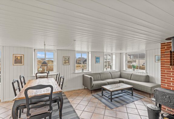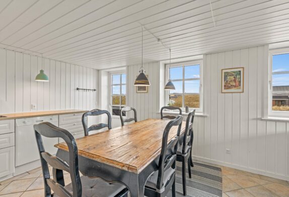 Dette hyggelige sommerhus ligger ind i en klit, kun 100 meter fra vandet. Gå en lang tur på stranden – måske er I så heldige, at I finder rav. Vejers by indbyder med små butikker, restauranter og et galleri.