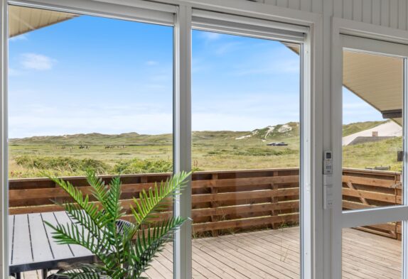 På den lukkede terrasse kan I sidde og nyde naturen på tætteste hold. Her får I virkelig en fornemmelse af det bølgende landskab, som området er kendt for. Her kan I sidde uforstyrret og nyde den friske luft, mens hundene trisser frit omkring. Nyd en lækker frokost, der er tilberedt på grillen, slappe af på langs eller sidde med en god bog.