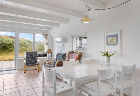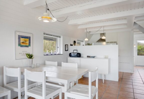 Sommerhuset på Regnspovedalen 7 råder over i alt 117 kvadratmeter fordelt på to etager, så der er god plads til fem personer. Den hyggelige indretning med synlige hvidmalede loftsbjælker og små pyntedetaljer leder straks tankerne hen på den klassiske sommerhusferie, langt væk fra hverdagens stress og jag.