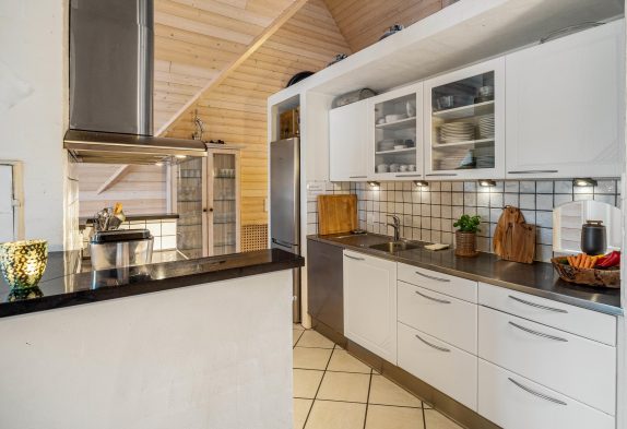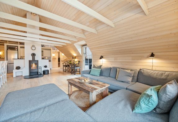 Det store opholdsrum med integreret køkken er et centralt rum, hvor alle feriegæster kan samles til en masse hyggelige feriestunder langt væk fra den travle hverdag.