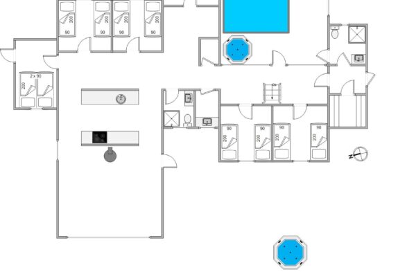 Sommerhuset i Blåvand er praktisk opdelt. De 2 badeværelser med gulvvarme sørger for, at I slipper for lange køer til badet om morgenen, og i de 5 soveværelser kan I trække jer tilbage og slappe af, hvis I har brug for det.