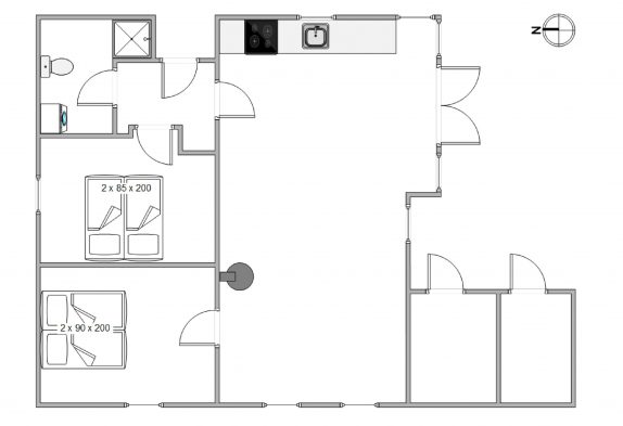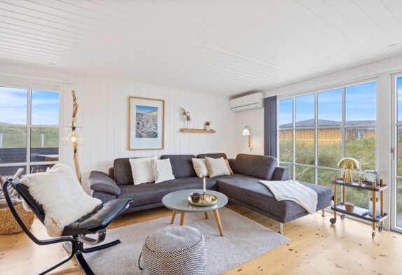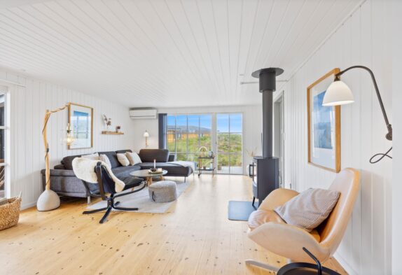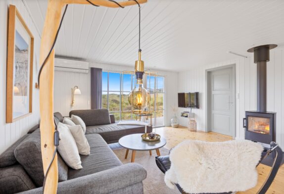 Sofaområdet indbyder året rundt til mere afslapning og hygge foran den dejlige brændeovn med yndlingsfilmen kørende på TV’et ved hjælp fra husets chromecast. De 2 store soveværelser er indrettet med brede dobbeltsenge, hvor I kan få en god nattesøvn under hele ferien. Om morgenen sørger gulvvarmen på det lyse badeværelse for, at I ikke fryser fødderne.