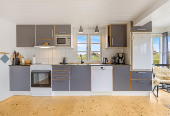 På dage med megen vind sørger terrassens hyggekrog ind mod huset for læ. Morgenmaden kan I nyde på den lille hyggeterrasse Øst for sommerhuset, hvor der er læ og afskærmning. Imens klarer opvaskemaskinen, vaskemaskinen og tørretumbleren alt det praktiske.