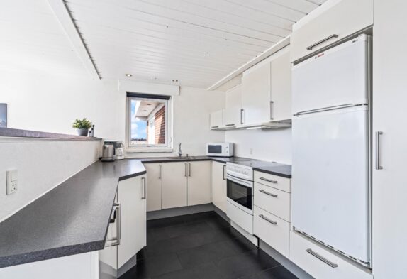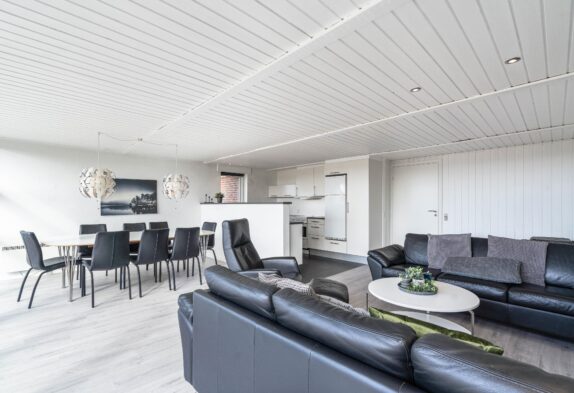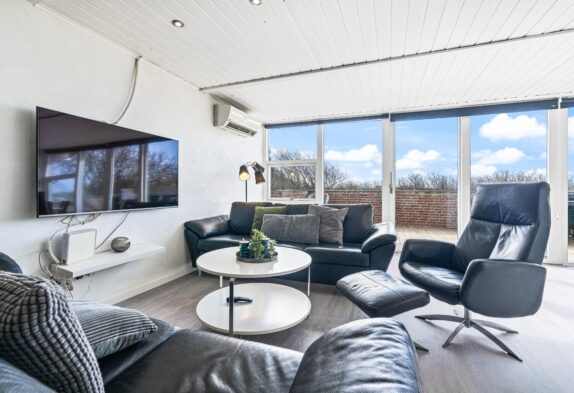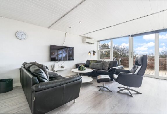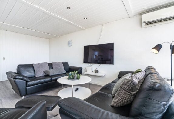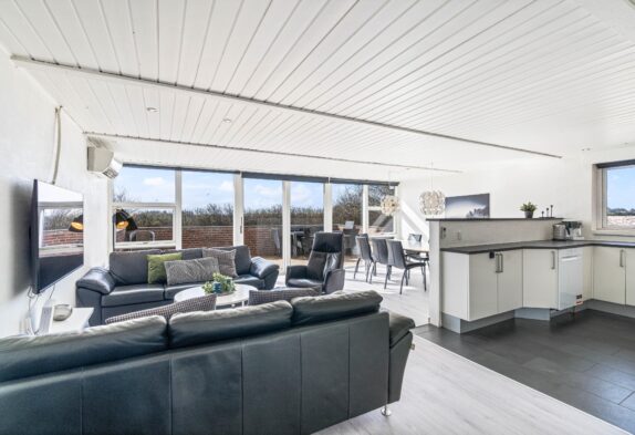 Det er ikke til at tage fejl af, at feriehuset i 2019 er blevet renoveret. Den moderne indretning med flotte lædermøbler, der står i kontrast til de hvide vægge og lofter, sætter de helt perfekte rammer for ferien. Store vinduespartier i opholdsrummet giver et skønt lysindfald, som gør omgivelserne endnu mere indbydende.
