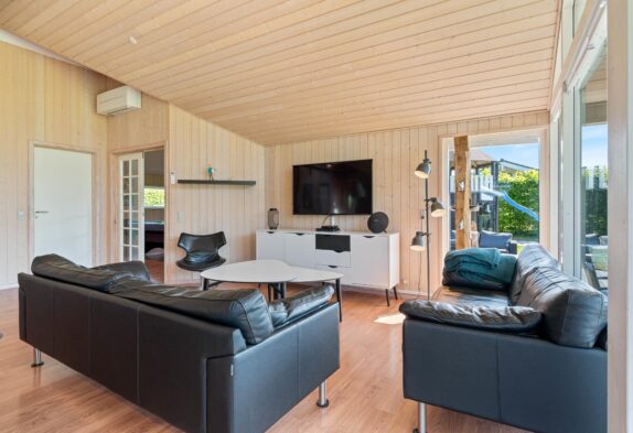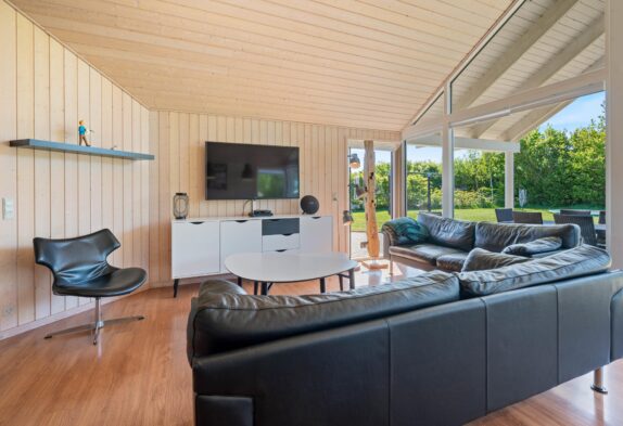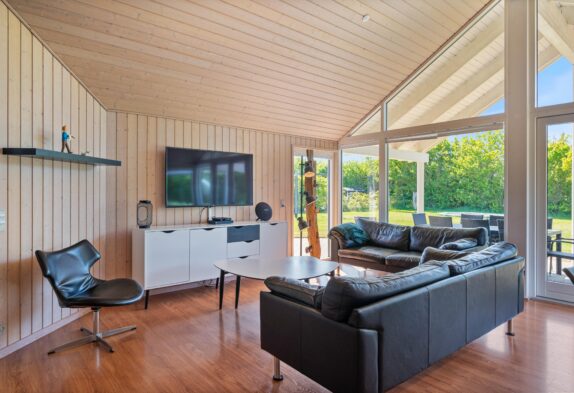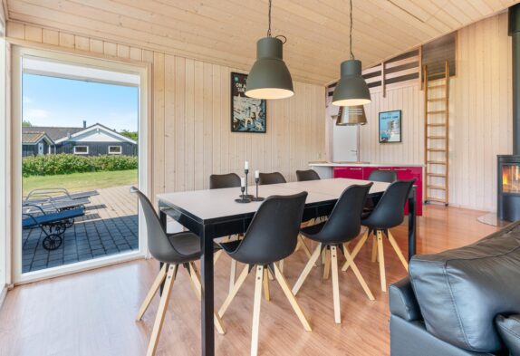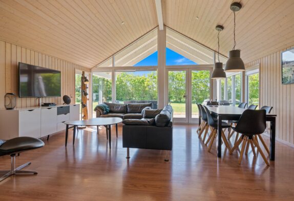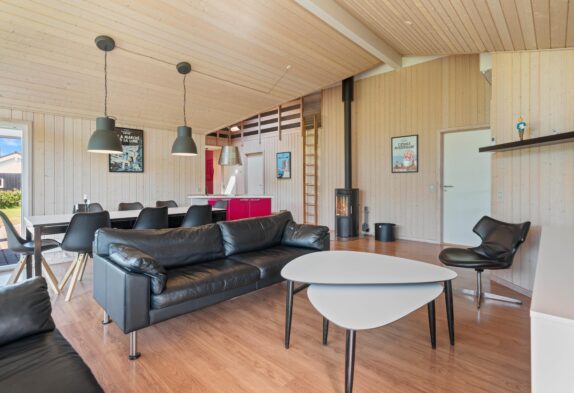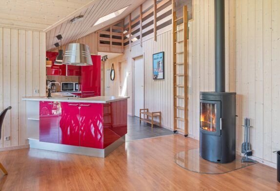Når I træder indenfor i sommerhuset, vil I straks bemærke den lyse indretning og de store vinduer, der lukker masser af naturligt lys ind. Det åbne køkkenalrum gør det nemt at holde samtalen kørende mellem køkkenet og de bløde møbler i stuen. Her kan I også lune jer ved den hyggelige brændeovn, der skaber den helt rigtige sommerhusatmosfære.